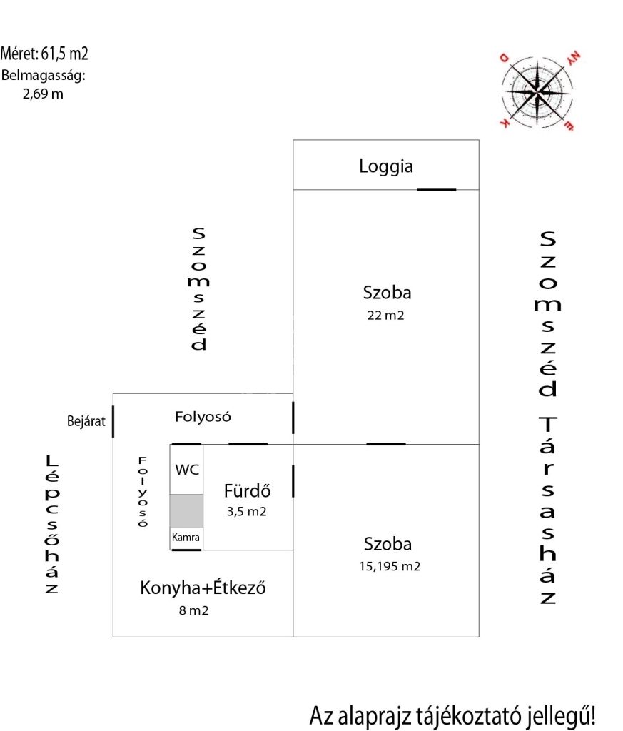 62 m2Alapterület 2 Szoba