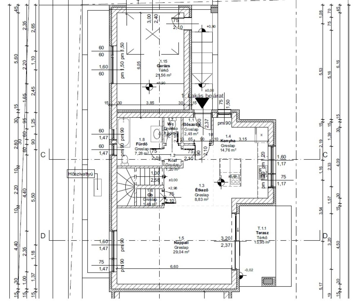 Parkolás: saját 36 nm-es dupla garázs, elektromos kapu előkészítés.