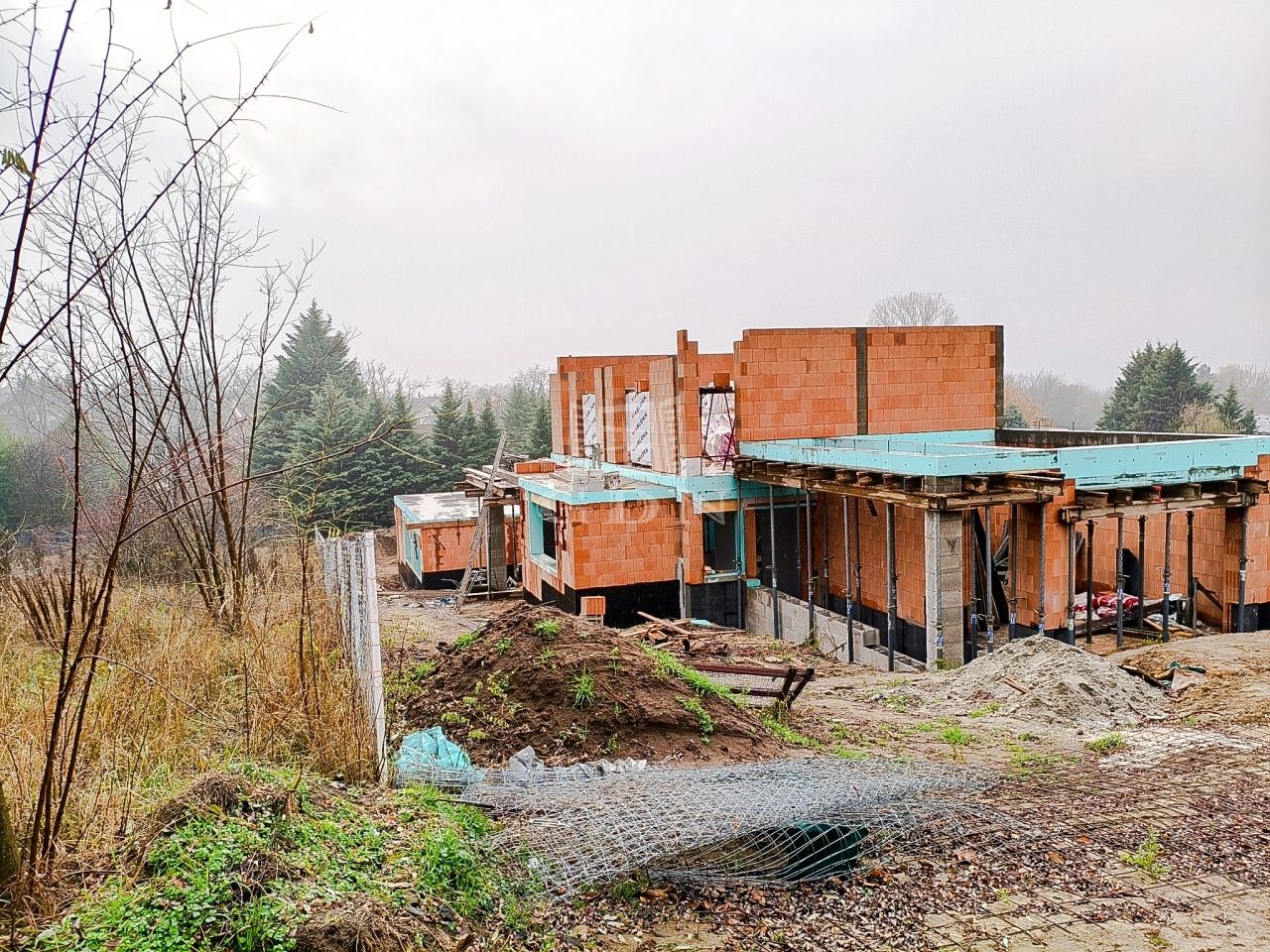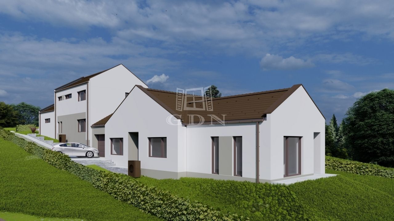 Veresegyház, Hegyek városrész csendes, kertvárosias részén, cca. 650 nm-es telek területtel, Új építésű, bruttó 176 nm-es, 5 szobás (nappali + 4 hálószoba, külön konyha, étkező), egy szintes, vasbeton födémes, hőszivattyús (levegő - vízes) padló fűtéssel, Dél - Nyugati fekvésű, műanyag thermo dió színű (3 rétegű, 7 légkamrás) nyílászárós, szigetelt (15 cm dryvit), új építésű, a másik féltől teljesen elszaparált, dupla garázzsal elválasztott, a másik lakóegységgel egy telken lévő, de külön, elválasztott úton megközelíthető családi ház (hátsó) eladó.