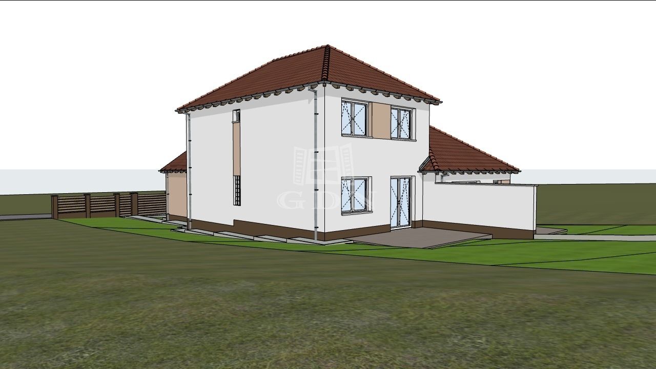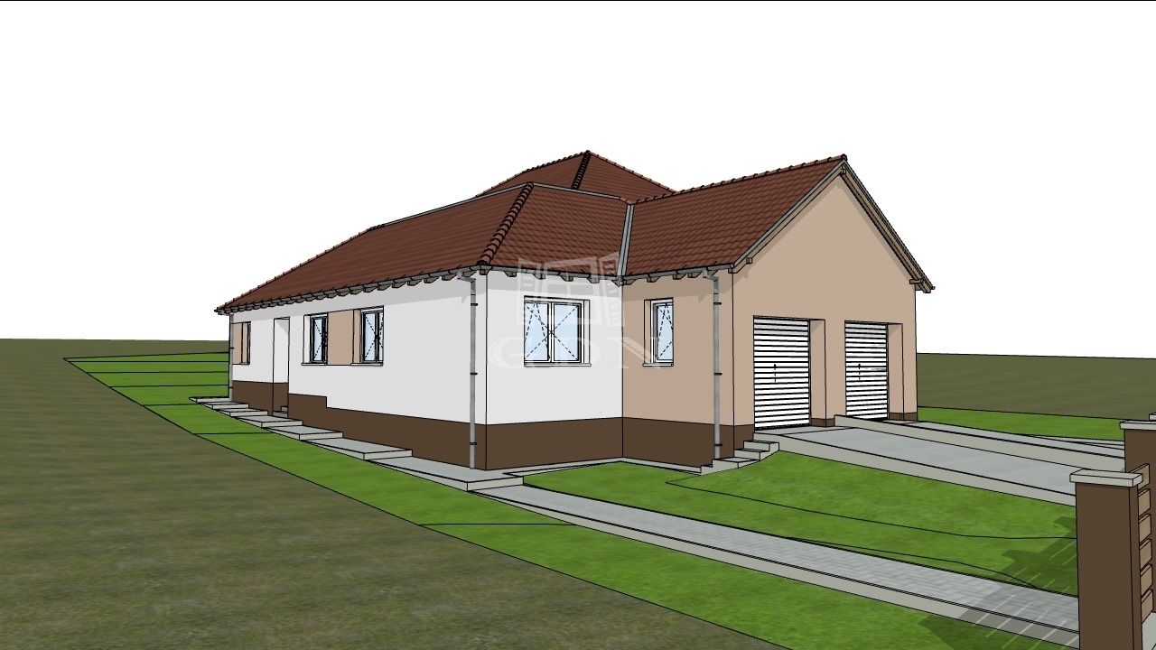 Jelen ikerház fél nettó 114 nm hasznos alapterületű egy szintes épület + 20 nm-es fedett garázs, valamint 19 nm-es terasz.