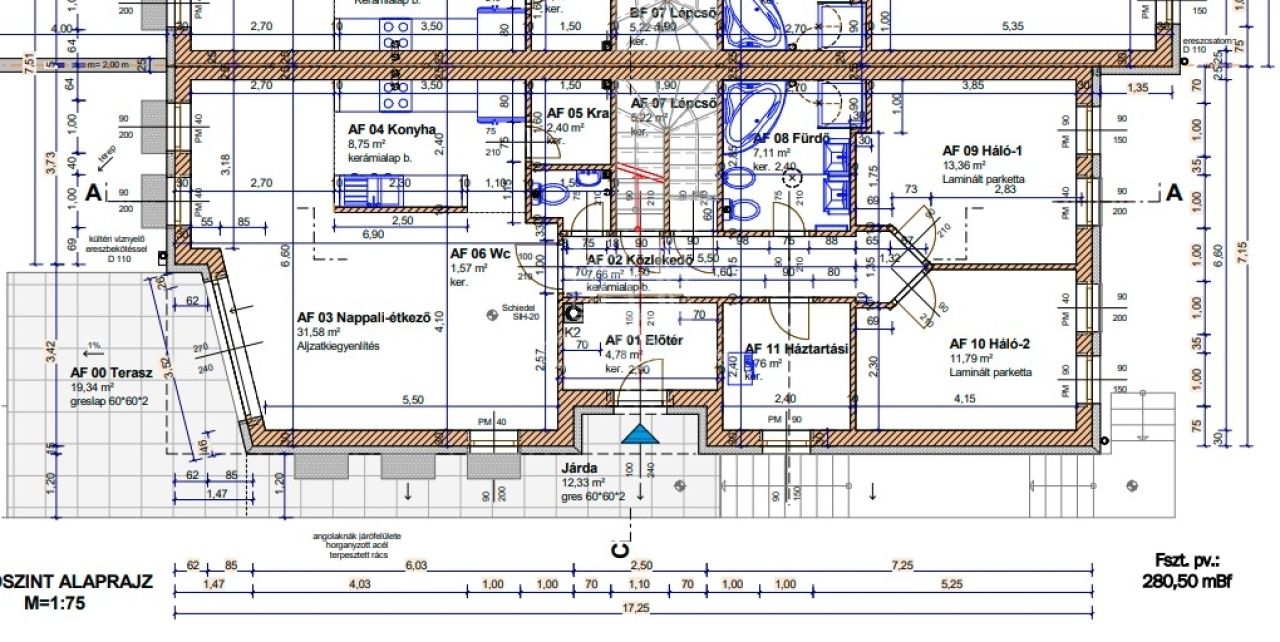 - A tetőtérben további szobák és fürdő kiépítésre előkészítve