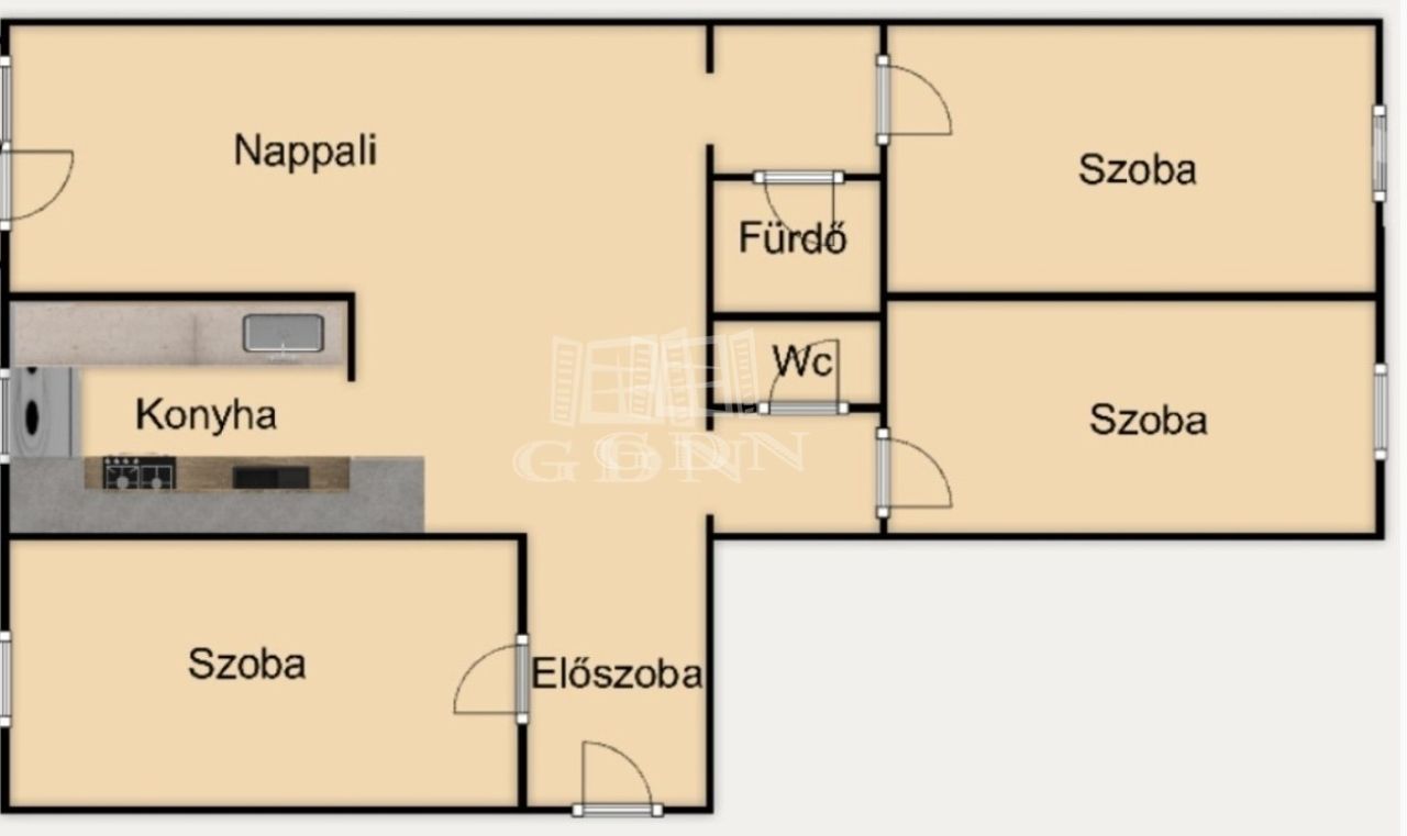 ✔ Tágas nappali + 3 külön nyíló félszoba