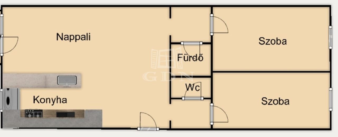 | 55 m2Alapterület | 1 + 2 Szoba |