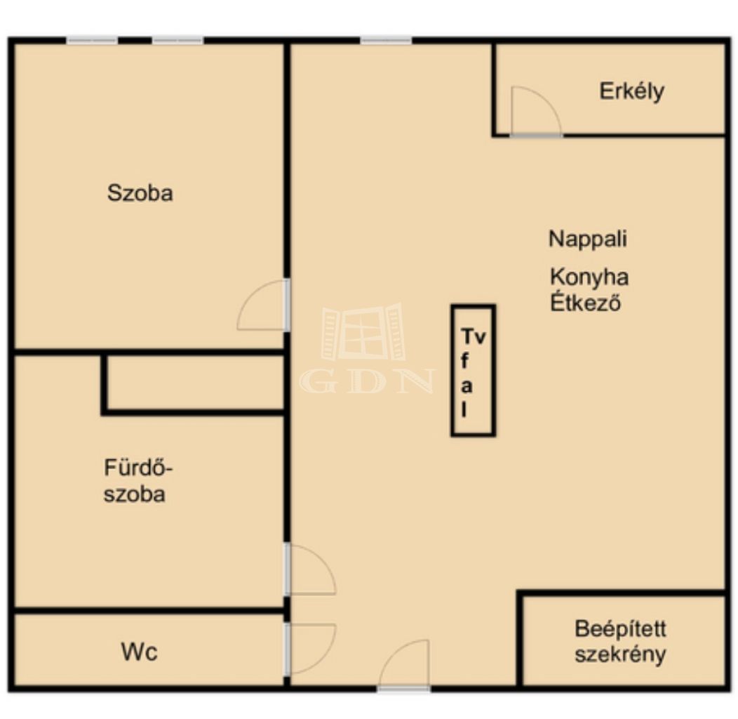 A lakás elrendezése ideális: a tágas, amerikai konyhás nappali közvetlen kapcsolatban áll az erkéllyel, a külön nyíló hálószoba kényelmes életteret biztosít, emellett egy modern, zuhanyzós fürdőszoba és külön helyiségben kialakított toalett szolgálja a mindennapi komfortot.